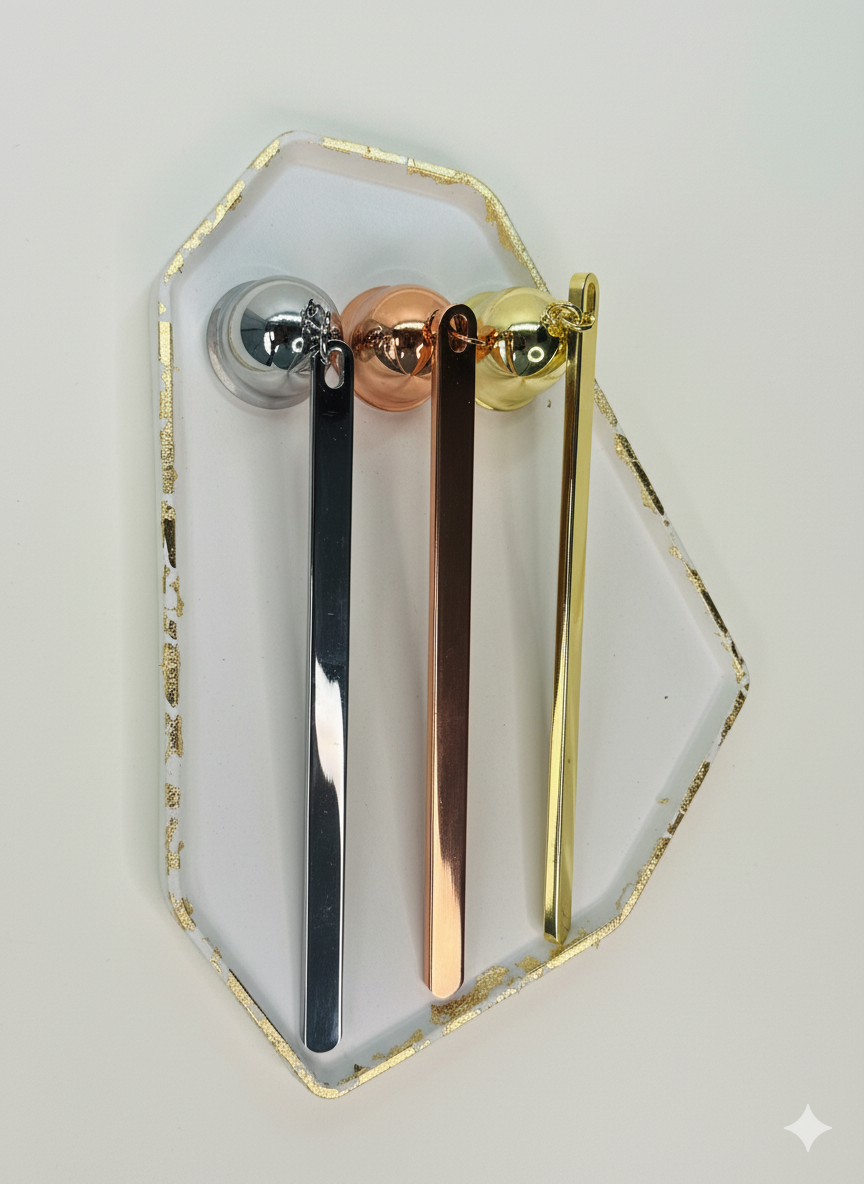 El Apagallamas Cassa Solem fue diseñado para quienes disfrutan cada detalle del ritual de encender y apagar una vela. Su forma estilizada y su acabado metálico lo convierten en una pieza sofisticada que combina belleza y funcionalidad.
