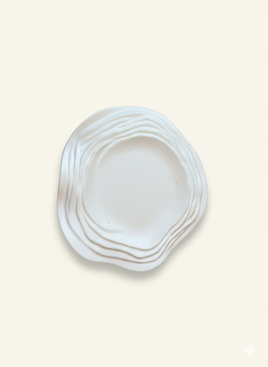 La Base Brisa Marina evoca el movimiento sereno del mar. Su diseño con bordes en forma de ola crea una sensación de fluidez y armonía, ideal para acompañar las velas Cassa Solem en ambientes donde se busca equilibrio, calma y belleza natural.